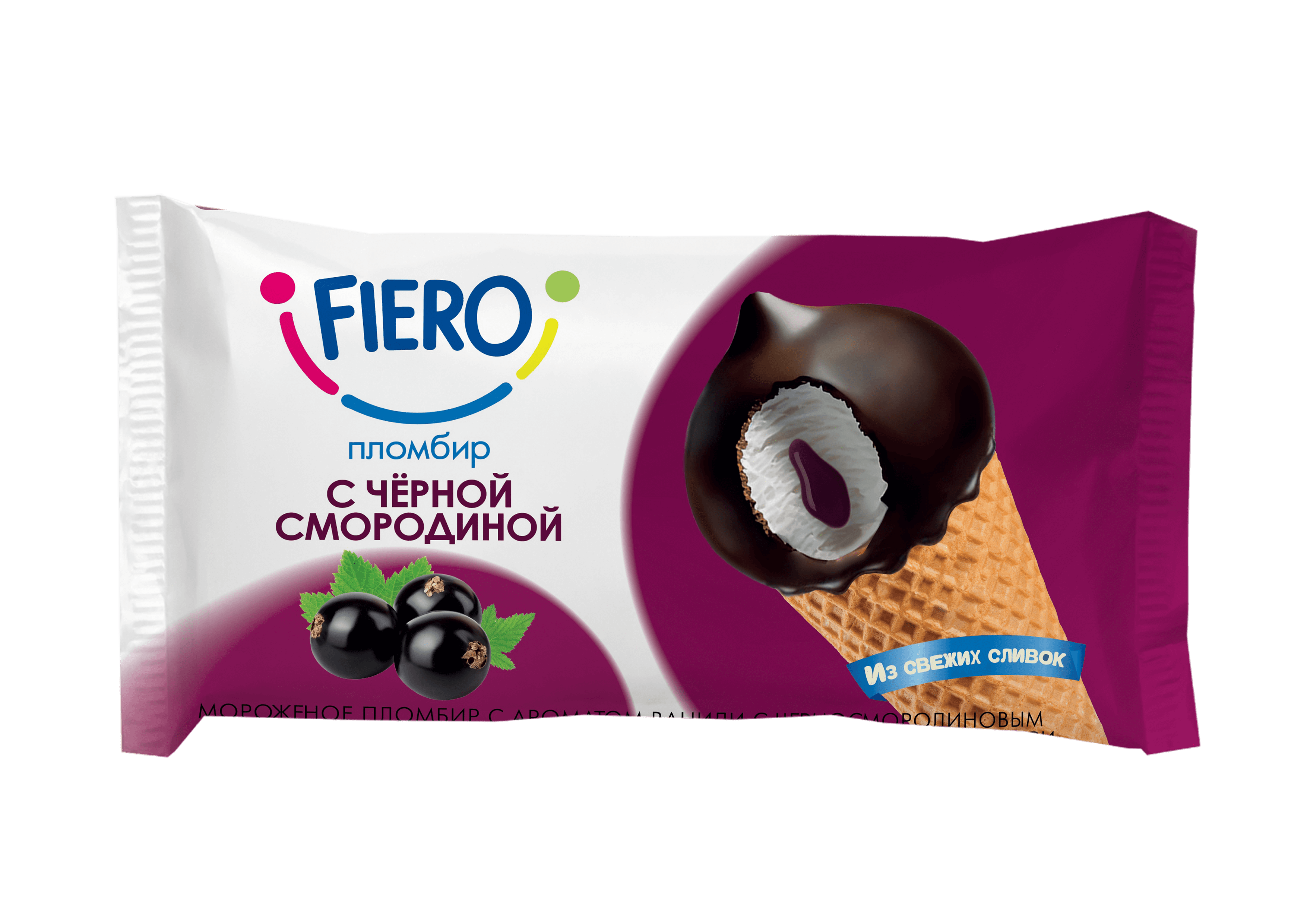Мороженое пломбир с ароматом ванили с «ЧЕРНОСМОРОДИНОВЫМ ВАРЕНЬЕМ» в вафельном сахарном рожке в какаосодержащей глазури